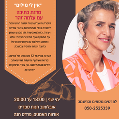 סדנת כתיבה בת שמונה מפגשים בהנחיית דנית גולד, סופרת ומנחת סדנאות כתיבה, זוכת פרס שר התרבות ליוצרים בראשית דרכם. הסדנה מתקיימת בקבוצה אינטימית ומאפשרת תהליך עומק משותף, תרגול עקבי ומונחה, ושיח פתוח הכולל משוב מעשיר ומקדם.